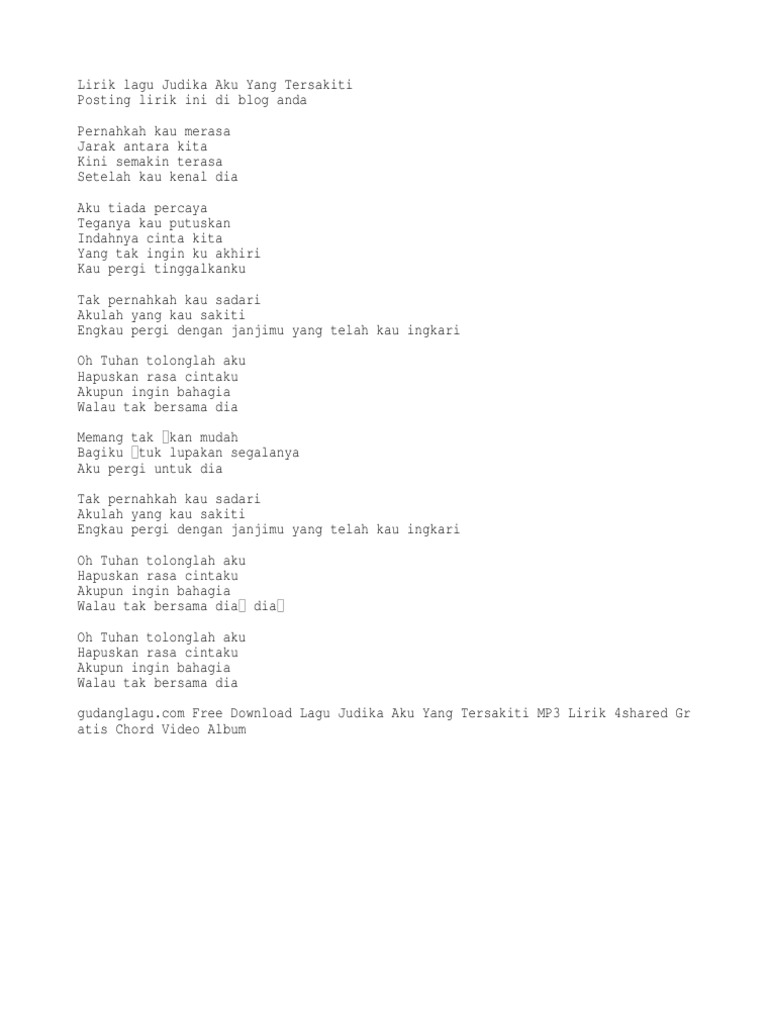 Lirik Lagu Judika Aku Yang Tersakiti Pdf
